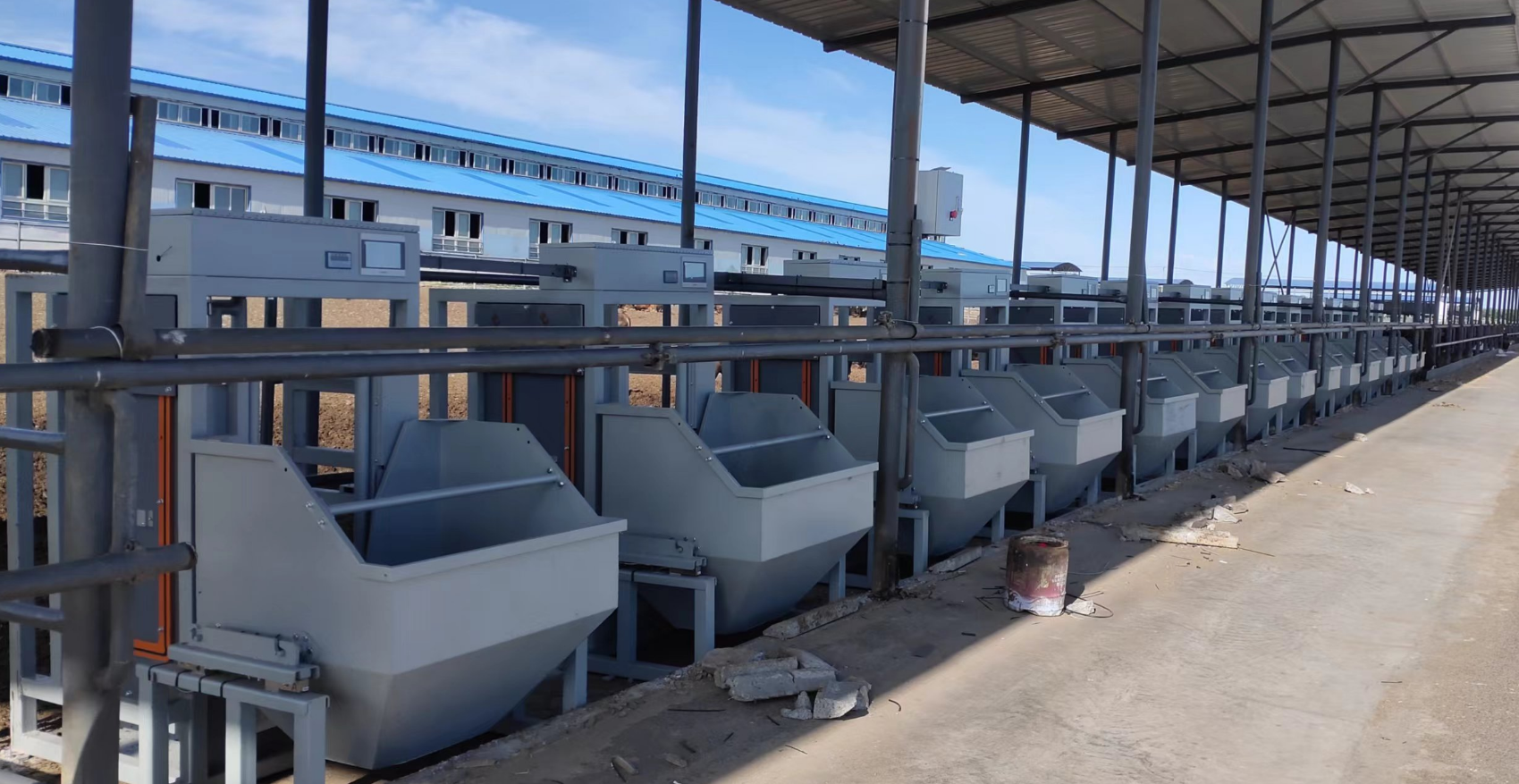 本系统为 TMR 全混料自动饲喂站,可连续、精确记录每头牛的采食量、日增重。单台设备可饲喂 3~4 头牛;牛进入设备吃料时,自动记录耳标、饲槽初重、开始吃料时间、草重、饲槽末重、吃料结束时间,进而获取每头牛的吃料量、日增重、吃料时长等数据。这些数据可为测定饲料配方、选育优秀后备种牛、分析牛只行为等提供可靠支撑。